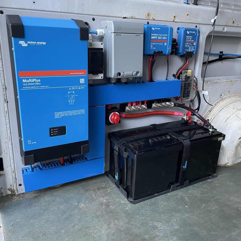 We design and install safe, reliable electrical systems for campervans of all sizes. This includes leisure battery setups, solar panels, split-charge and shore power systems, 12V and 240V electrics, inverters, and system monitoring. We also carry out electrical upgrades and fault finding on existing conversions. If you’re unsure what system you need, or if your setup doesn’t quite work as it should, contact us and we’ll help you find the right solution.